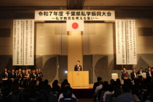 また、大会にはご来賓として、熊谷俊人千葉県知事を始め、多くの千葉県選出国会議員、千葉県議会議員の先生方をお招きして、千葉県私学の現状をご報告させていただくとともに、大会決議を採択いたしました。